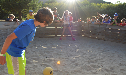 Free play on the field is always a good time. Some are playing baseball or gaga ball, but we could start a game of volleyball, or just hang out at the crafts table.